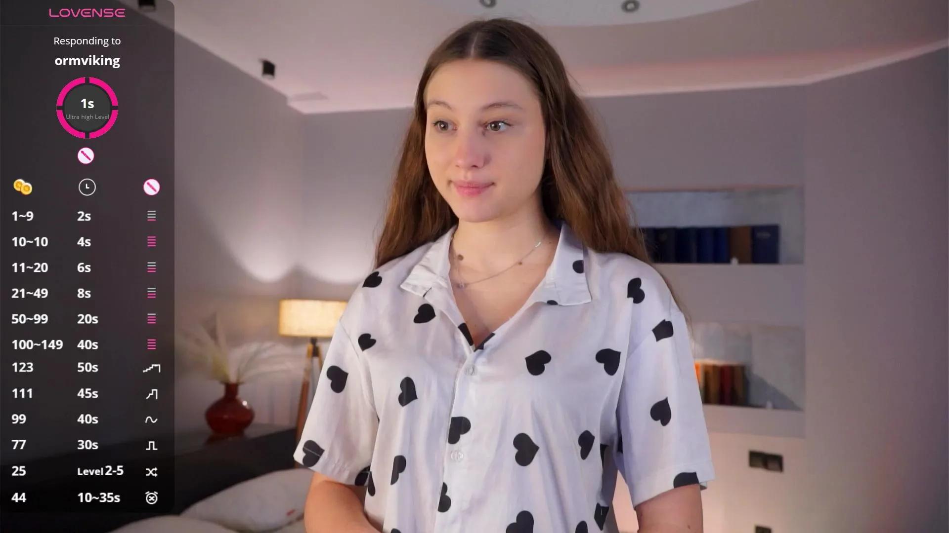 Her most recent live event averaged 5.6 hours in freechat, stayed in one freechat slot 10.5 hours before changing modes. The most recent time she was live added up 25 freechat sessions. Freechat on her most recent cam stream lasted 6 days. She racked up 6 days of streaming for that outing, logged about 8 average viewers yesterday. The last active session day saw a maximum of 7 viewers. Her last workday reports reflect 8 viewers,