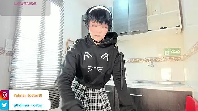 Get in to see the streaming cam of the cute Palmer-Foster. Zie will exhibit zir cherished lingerie and sex toys, lay bare and peak to leave you enchanted, camshows are truly kooky and fantastic,